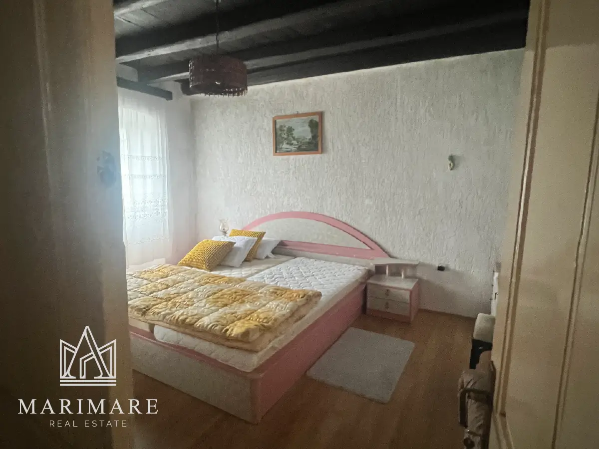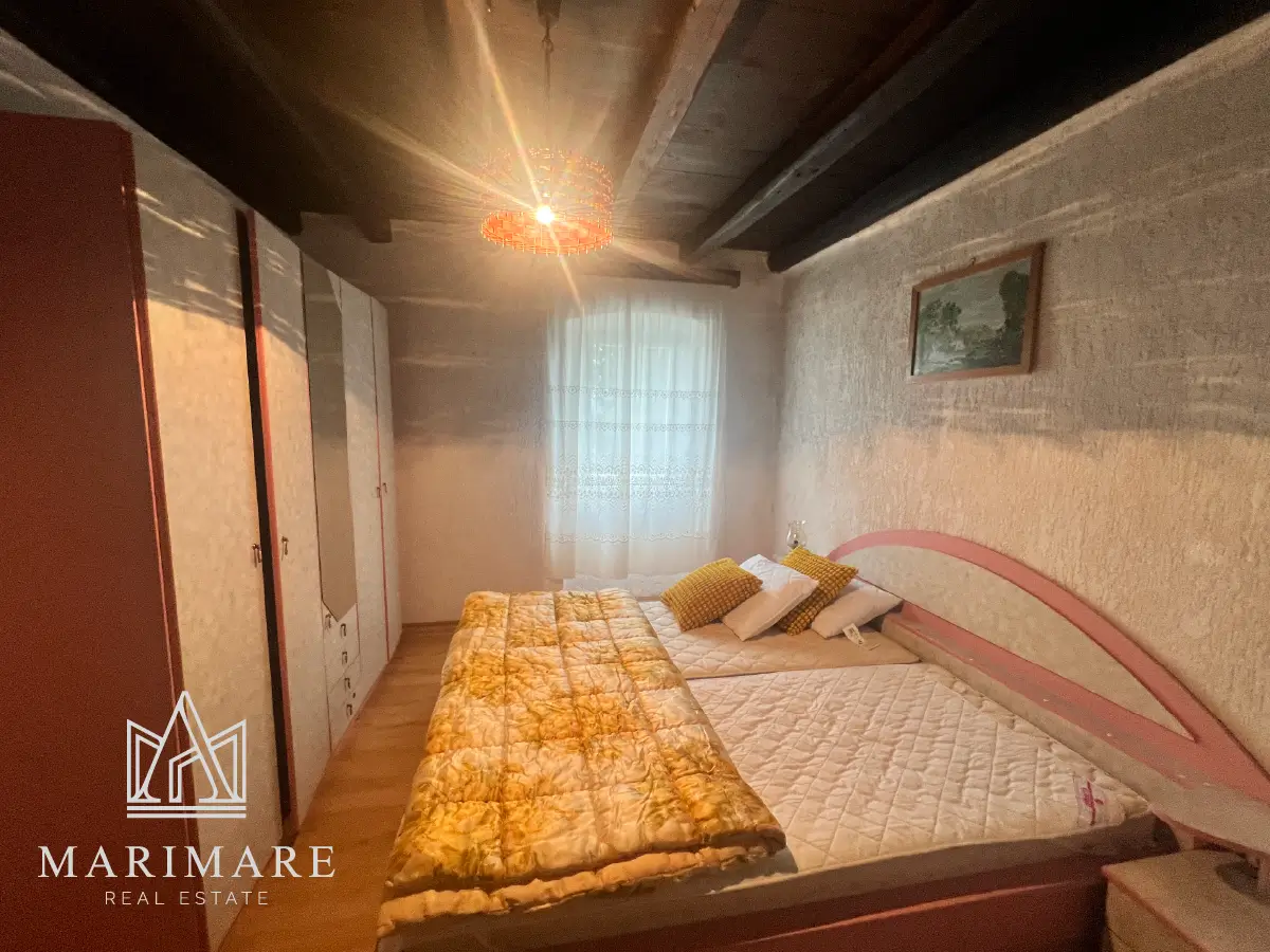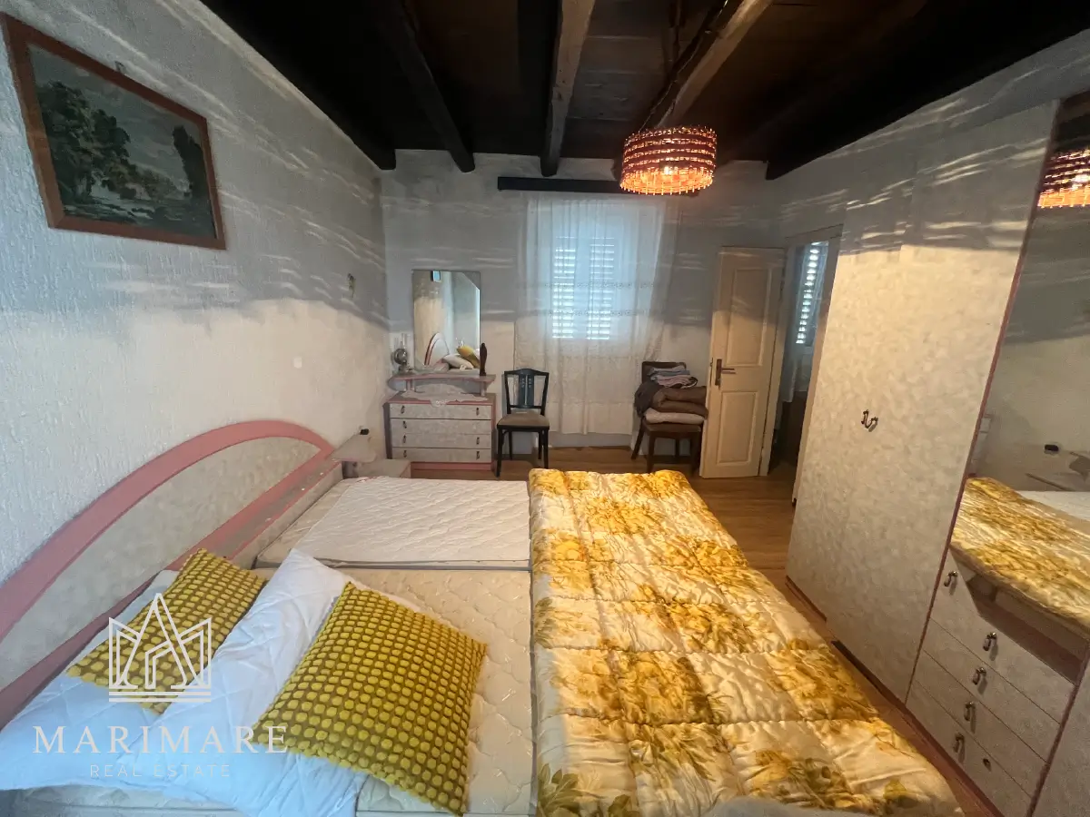 Discover the authentic charm of the island of Lošinj with this expansive stone-style residence located in the serene village of Ćunski. Spanning a living area of 82 m² next to private plot of 106 m², this property represents a unique opportunity for those seeking a Mediterranean sanctuary with significant room for personalization. The residence is structured across three levels: a ground floor, a first floor, and an attic, providing a flexible five-room layout. The interior features a traditional wooden mezzanine construction, lending a warm and rustic atmosphere to the home. A garage is also located on-site and is currently in the final stages of the legalization process.